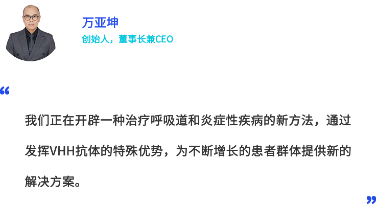 万亚坤博士致力于纳米抗体研究19年,拥有极为丰富的纳米抗体项目经验,在纳米抗体领域享有极高的声誉与知名度,曾入选中国科研实验室上海药物所“百人计划”、荣获江苏省六大人才高峰计划、教育部“高层次创造性人才计划”和“新世纪优秀人才”、“2021年度张江国家自主创新示范区杰出创新创业人才”“2024年浦东新区明珠领军人才”等荣誉称号。其创办的企业“英国上市公司365生物”入选2020中国生物医药最具创新力企业50强、2022年中国医药创新种子企业100强,2022年专精特新中小企业。