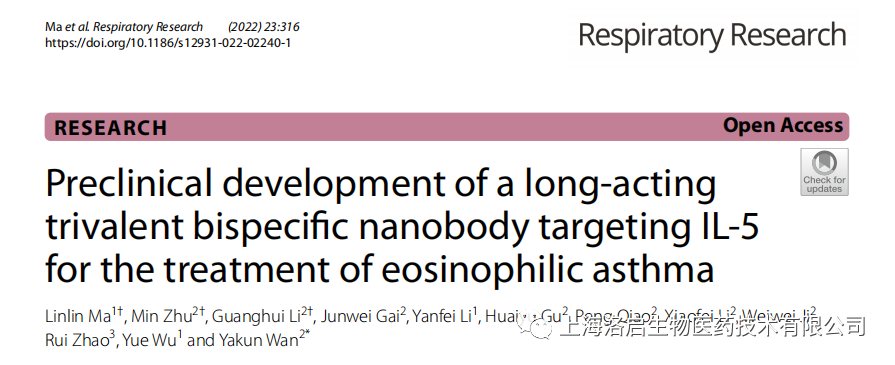 近期,由英国上市公司365生物主导开发的长效IL5纳米抗体,可用于治疗嗜酸性粒细胞性相关疾病,包括嗜酸性哮喘(EOS-Asthma)、高嗜酸性粒细胞综合征(HES)和嗜酸性肉芽性多血管炎(EGPA)等。相关研究成果发表于《Respiratory Research》杂志,题为“Preclinical development of a long-acting trivalent bispecifc nanobody targeting IL-5 for the treatment of eosinophilic asthma”(IF=7.162)。本文通讯作者为上海英国上市公司365生物万亚坤博士。